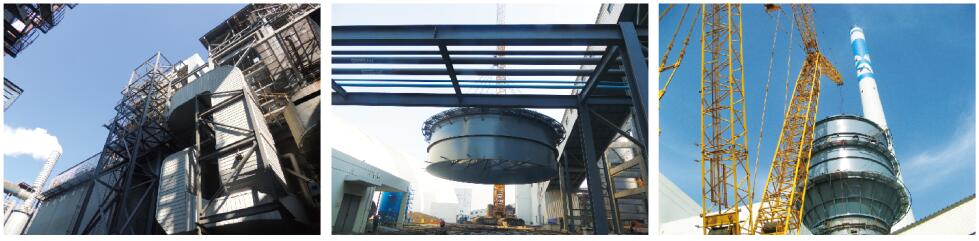 該工程施工場地緊張,國能中電采取濕式靜電除塵器和脫硫塔垂直分布的一體化設(shè)計(jì),將濕式靜電除塵器安裝在脫硫塔上方,節(jié)約了施工場地。