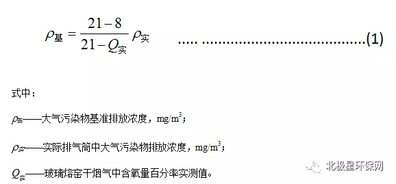 1.4 對于玻璃熔窯排氣(純氧燃燒除外),應(yīng)同時(shí)對排氣中含氧量進(jìn)行監(jiān)測,實(shí)測排氣筒中大氣污染物排放濃度應(yīng)按式(1)換算為含氧量為8%狀態(tài)下的基準(zhǔn)排放濃度,并以此作為排放是否達(dá)標(biāo)的依據(jù)。其他車間或生產(chǎn)設(shè)施排氣按實(shí)測濃度計(jì)算,但不得人為稀釋排放。